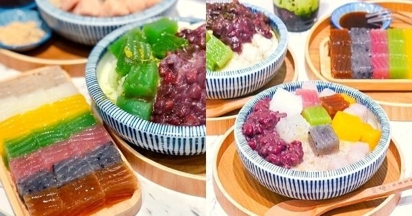在IG爆紅的七彩粉粿,不是色素,而是真的使用天然食材做出來的!口味多元以抹茶、芝麻、桂花、玫瑰、椰香、黑糖、山梔子做成的,還附上古早味的黑糖和黃豆粉,可以沾著提味!
