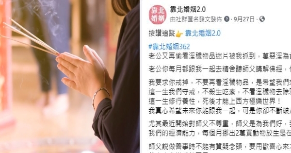老婆「每月5萬全供奉師父結善果」,抓包老公看片大罵:「犯戒不能上西天了!」網友:「拜託放過妳老公!」