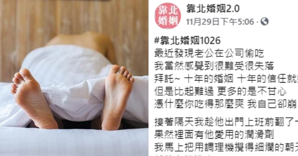 該名妻子在臉書「靠北婚姻2.0」透露,