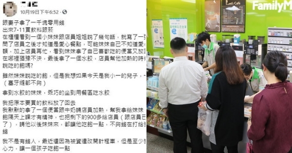 原PO在臉書社團《爆怨2公社》中表示,當時他帶了1000元到家裡樓下的超商買飲料,在櫃檯注意到一個小小身影和店員領取表格來填寫,好奇之下問了店員才知道,女孩拿的是領取愛心餐的單子,不過可能因為不太了解規則內容,他發現小女孩在便當區拿了又放、猶豫不決。