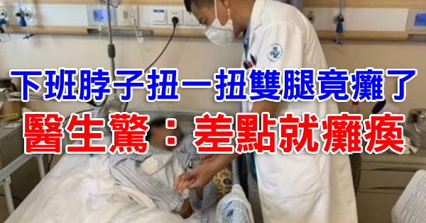 下班脖子酸痛,OL「扭一扭」半夜雙腿竟癱了...隔天胸腔以下「像木頭」醫生驚:差點就癱瘓了!頸椎保健人人都要懂,快傳給親朋好友看!
