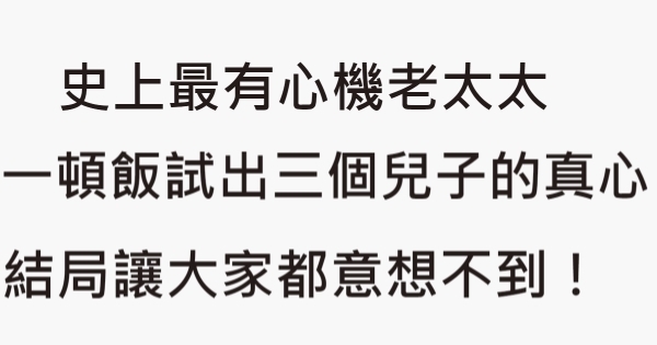 她是史上最有心機老太太,用一頓飯試出三個兒子的真心!結局讓大家都超意料之外!