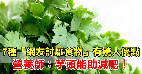 「挑食」不僅在營養攝取上不均衡,也可能使身體機能出問題。像是香菜、茄子、蔥等等,在最不受網友喜愛的食物中都榜上有名,但其實,這些討人厭的蔬菜含有豐富營養素。營養師李其昀就在粉專分享了7種雖然一般人討厭,實際上卻擁有驚人優點的食物,包括頗具爭議的香菜,能幫助身體解毒,甚至連澱粉類芋頭,都有助減肥。