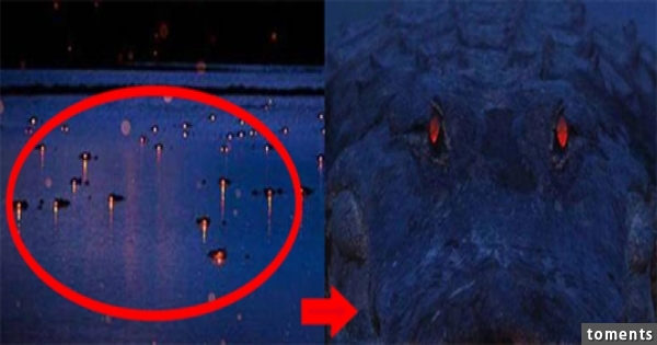 其實,這些危險的鱷魚的眼睛並不是紅色的,這種效果的造成是因為它們眼睛中有一種很特別的東西,可以將夜晚黑光進行反射。這和貓咪眼睛的原理是相似的,只不過它們不是綠色而是紅色