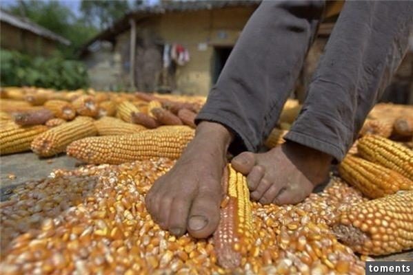 昨天趕場回到家已是10時。卸下東西,陳星銀抬頭瞧了瞧天:「嗯,今天太陽多大的,再出幾個太陽天,包穀就可以收起來了。」他用腳夾了一個空塑料袋,幾腳就在院壩鋪開了,然後回到堂屋,用牙銜著一袋袋裝著玉米的塑料袋往外搬,然後把玉米鋪了一地。