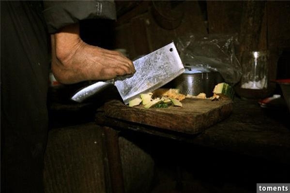 20歲那年,父親去世了。眼看著母親在外辛苦幹活回到家後,吃不到一頓現成的飯,他開始鍛鍊自己的腳趾功夫——用右腳趾縫夾起菜刀提到半空,結果掉下來砸到左腳上,至今還有疤痕。
