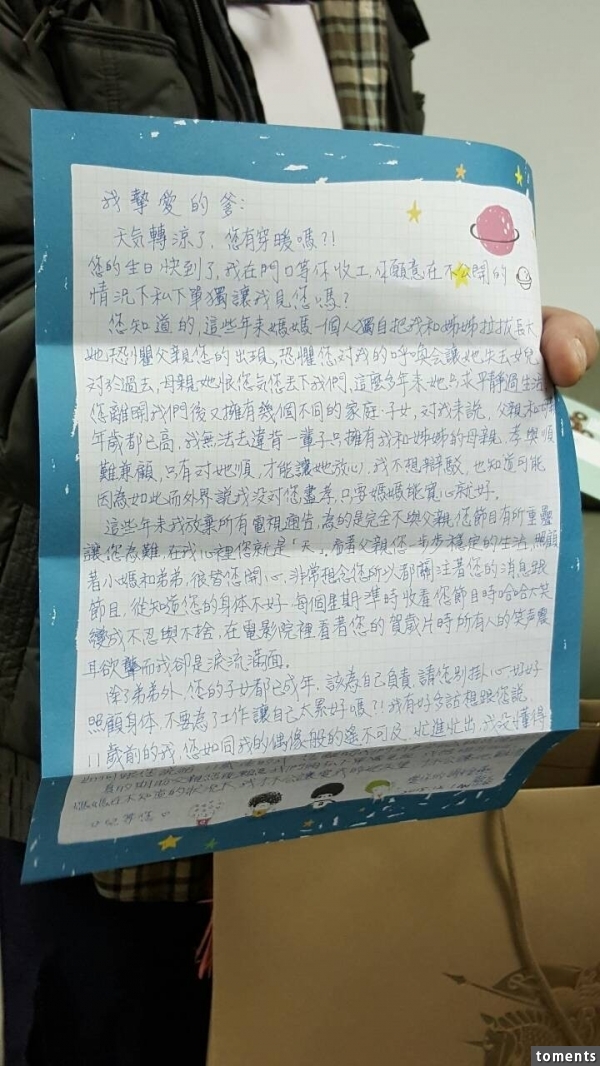 她說,內心有太多話想跟爸爸說,所以在這次生日前夕,「我在門口等你收工,你願意單獨讓我見您嗎?」