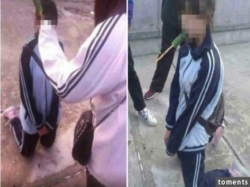 ▼網路上瘋傳的霸凌照片(為上海市貿易學校的學生)