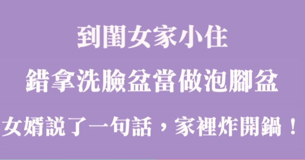 哈摟哈摟各位讀者~~我是有錢人這麼想小編Choco!今天要來說說關於「到閨女家小住,錯拿洗臉盆當做泡腳盆,女婿說了一句話,家裡炸開鍋!」,不知道大家有沒有興趣呢!一起來看看是怎麼樣的事吧!