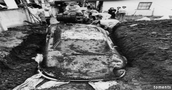 這家人挖出法拉利後,之後驚訝無比的告知政府,而政府的調查員到現場後,便合力把年代久遠的法拉利挖掘出土。