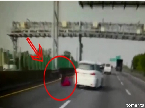 紅衣女孩摔落車道,差點遭自小客車輾過,現場險象環生!