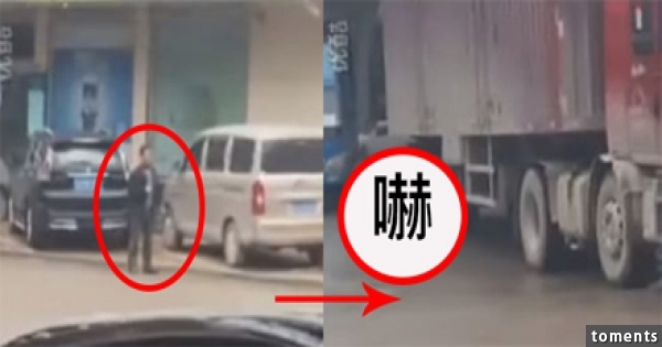 而在圍觀的民眾當場就傻了眼,好心的路人連忙叫卡車司機停車。
