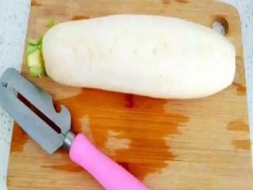 1、首先,把白蘿蔔洗淨,切4~5薄片。