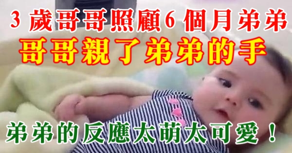 3歲哥哥照顧6個月弟弟,哥哥親了弟弟的手,弟弟的反應太萌太可愛!!!