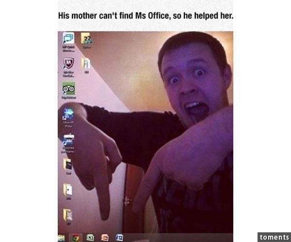 #24. 他的媽媽一直找不到MS OFFICE,所以他換了桌面