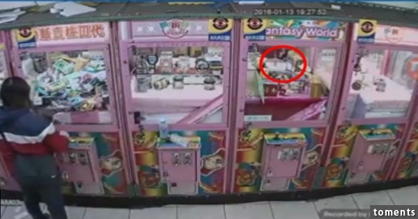 監視器錄下夾娃娃機「鬼上身」的一幕....