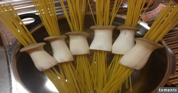 把義大利麵「刺」進杏鮑菇裡!煮出來竟然長得超像異次元的外星生物!