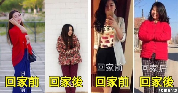 中國網友上傳他們「過年回家前後照」,這個恐怖的「過年回家秘密」終於曝光了…過年竟然還有「必備單品」…