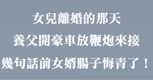 各位讀者安安阿~~我是有錢人這麼想小編Choco!今天要來說說關於「女兒離婚的那天,養父開豪車放鞭炮來接,幾句話前女婿腸子悔青了!」,不知道大家有沒有興趣呢!一起來看看吧!