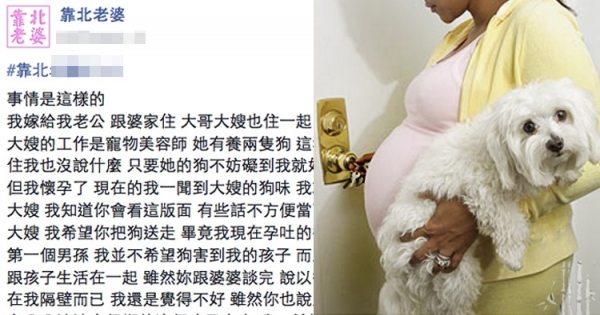 大嫂 我希望你把狗送走 畢竟我現在孕吐的很厲害 而且我懷的是這個家第一個男孫 我並不希望狗害到我的孩子