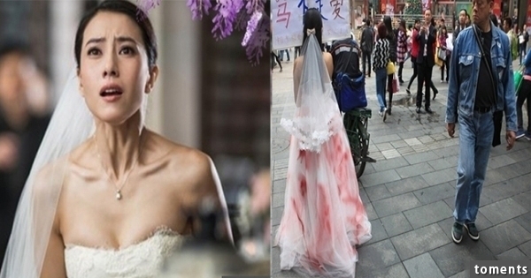 等新娘處理好小孩的住院事宜,往身上一看,哇!雪白色婚紗全染成血紅色!她當時顧不了那麼多,便一身血紅色的婚紗往男方的家前進。