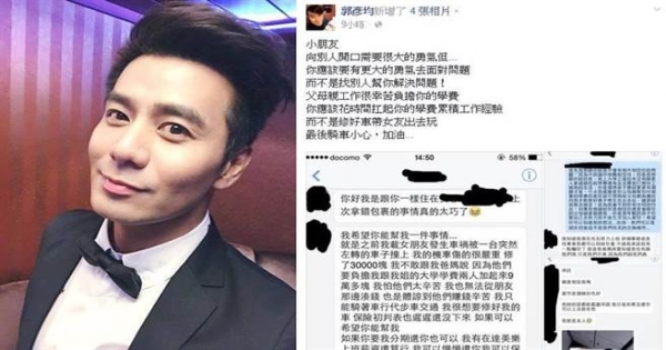 男大生自己私訊藝人郭彥均,表示自己每個月打工錢賺1萬2扣掉房租車貸僅剩1千塊,加上父母給的零用錢6千塊,每個月七千塊的花費真的不夠用。但又因為近日發生車禍急需要3萬修車,才會無奈地找上了郭彥均。