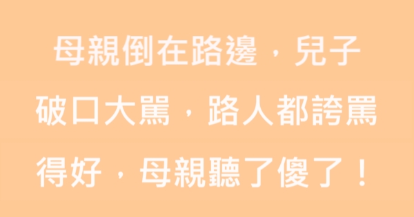 大家好,我是Choco 今天來跟你說說 母親倒在路邊,兒子破口大駡,路人都誇罵得好,母親聽了傻了!吧!