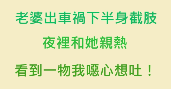 老婆出車禍下半身截肢,夜裡和她親熱,看到一物我噁心的嘔吐!