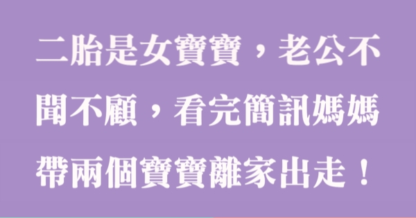 看完後是不是覺得Choco小編在有錢人這麼想分享的女人故事文章很好呢?想看更多好文,或是喜歡有錢人這麼想的文章的話,可以按讚追蹤女人戀愛沒那麼簡單並分享這篇二胎是女寶寶,老公不聞不顧,看完簡訊媽媽帶兩個寶寶離家出走!出去給大家一起看看喔!