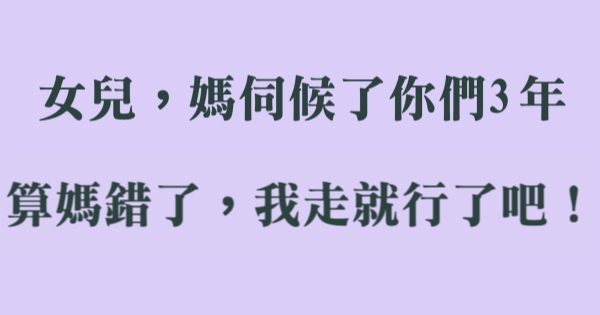 哈摟哈摟各位讀者~~我是有錢人這麼想小編Choco!今天要來說說關於「女兒,媽伺候了你們3年,算媽錯了,我走就行了吧!」,不知道大家有沒有興趣呢!一起來看看是怎麼樣的事吧!