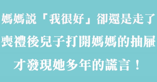 媽媽說「我很好」卻還是走了,喪禮後兒子打開媽媽的抽屜,才發現媽媽多年的謊言!