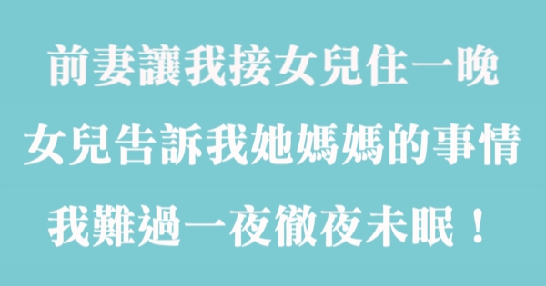 哈摟哈摟各位讀者~~我是有錢人這麼想小編Choco!今天要來說說關於「前妻讓我接女兒住一晚,女兒告訴我她媽媽的事情,我難過一夜徹夜未眠!」,不知道大家有沒有興趣呢!一起來看看是怎麼樣的事吧!