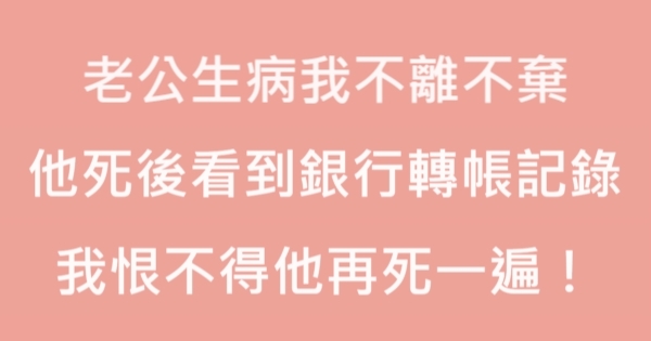 大家好,我是 Choco 今天來跟你說說 老公生病我不離不棄,他死後看到銀行轉帳記錄,我恨不得他再死一遍!吧!讓我們來看看!