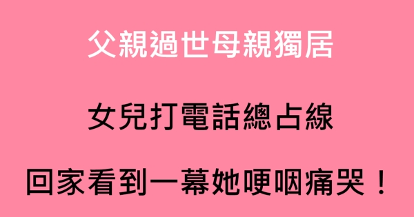 父親過世母親一人獨居,女兒打電話總占線,回家看到一幕她哽咽痛哭!