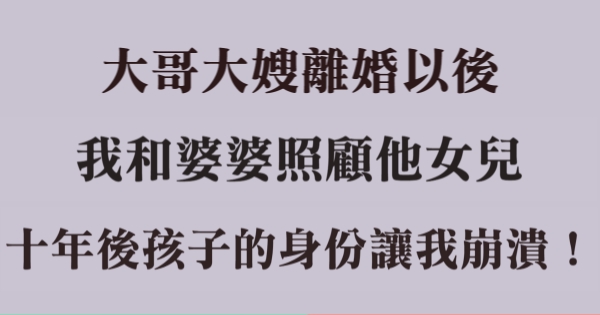 哈摟哈摟各位讀者~~我是有錢人這麼想小編Choco!今天要來說說關於「大哥大嫂離婚以後,我和婆婆照顧他女兒,十年後孩子的身份讓我崩潰!」,不知道大家有沒有興趣呢!一起來看看是怎麼樣的事吧!