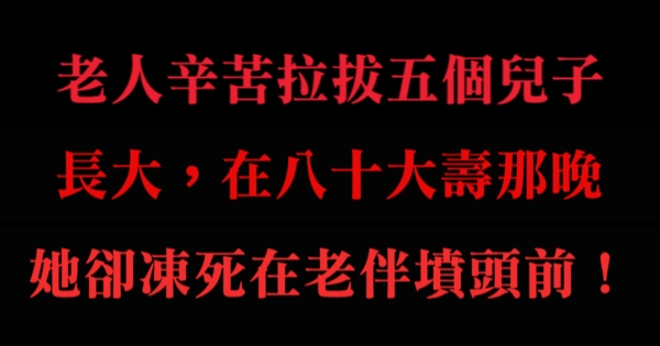 哈摟哈摟各位讀者~~我是有錢人這麼想小編Choco!今天要來說說關於「老人辛苦拉拔五個兒子長大,在八十大壽那晚,她卻凍死在老伴墳頭前!」,不知道大家有沒有興趣呢!一起來看看是怎麼樣的事吧!