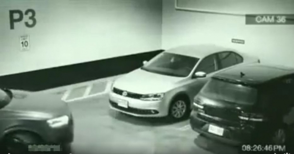 這監視器畫面裡,一位大哥開著黑色車子進到停車場,但看得到的停車格都滿了,但...這位大哥竟倒車了!?