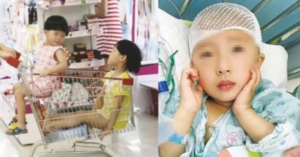 沒過多久,女兒突然說想去洗手間,並且一邊說、一邊就從購物車裡站了起來,正伸手準備去抱的何女士,只聽見「咚」的一聲,孩子冷不防已經從購物車裡探出大半個身子,突然頭朝下從側面的擋板處摔在地板上了。