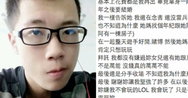 那個男的家裡的意思好像是不接受他那麼年輕就要結婚 我覺得根本媽寶...