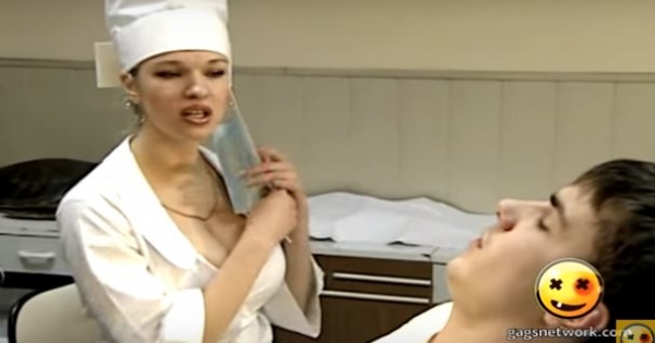 爆乳牙醫演戲有演好演滿,不停地幫男病患調整頭部角度,以便看清楚口腔。但不論他們的頭被怎樣擺放,眼睛絕對不肯離開牙醫的胸部半秒。