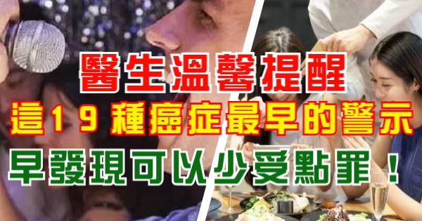 醫生溫馨提醒:這19種癌症最早的警示,早發現可以少受點罪!!