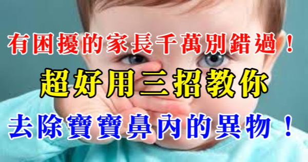 大家好,我是小寶貝媽媽經小編CA!今天要來說說關於「超好用三招教你:去除寶寶鼻內的異物!」的事!不知道大家對於這個有多了解呢?一起來看看吧!