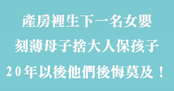 哈摟哈摟各位讀者~~我是有錢人這麼想小編Choco!今天要來說說關於「產房裡生下一名女嬰,刻薄母子捨大人保孩子,20年以後他們後悔莫及!」,不知道大家有沒有興趣呢!一起來看看是怎麼樣的事吧!