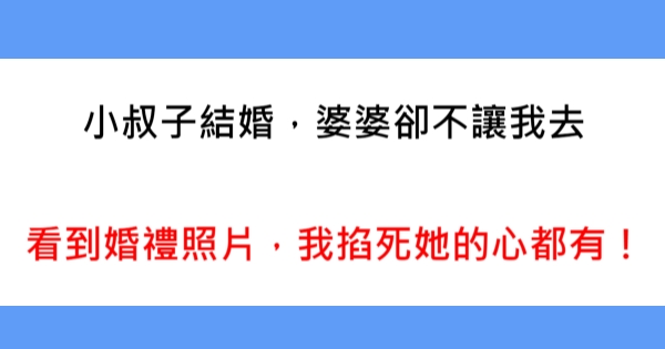 大家好,我是有錢人這麼想小編Choco!今天要來說說關於小叔子結婚,婆婆卻不讓我去,看到婚禮照片,我掐死她的心都有!的事!不知道大家對於這個有多了解呢?一起來看看吧!