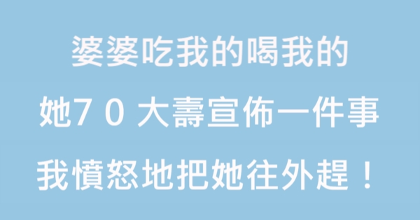 婆婆吃我的喝我的,她70大壽宣佈了一件事,我憤怒地把她往外趕!
