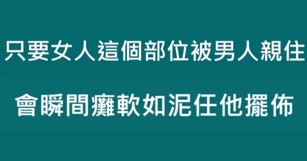 各位讀者安安阿~~我是有錢人這麼想小編Ant!今天要來說說關於「只要女人這個部位被男人親住,會瞬間癱軟如泥任他擺佈有點危險!」,不知道大家有沒有興趣呢!一起來看看吧!