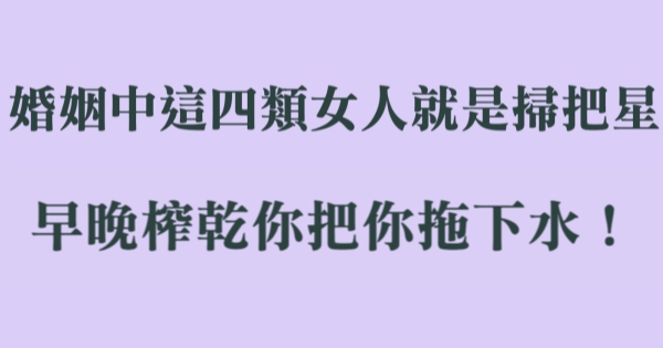 婚姻中這四類女人就是掃把星,早晚榨乾你把你拖下水!!!