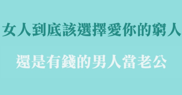 大家好,我是 Ant 今天來跟你說說 女人到底該選擇愛你的窮人,還是有錢的男人當老公,結果你意想不到!吧!讓我們來看看!
