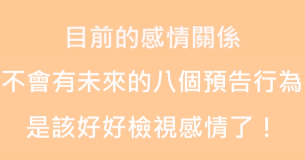 目前的感情關係不會有未來的八個預告行為,是該好好檢視感情了!!!