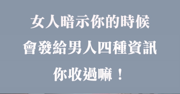 各位讀者安安阿~~我是有錢人這麼想小編Ant!今天要來說說關於「女人暗示你的時候,會發給男人四種資訊,你收過嘛!」,不知道大家有沒有興趣呢!一起來看看吧!